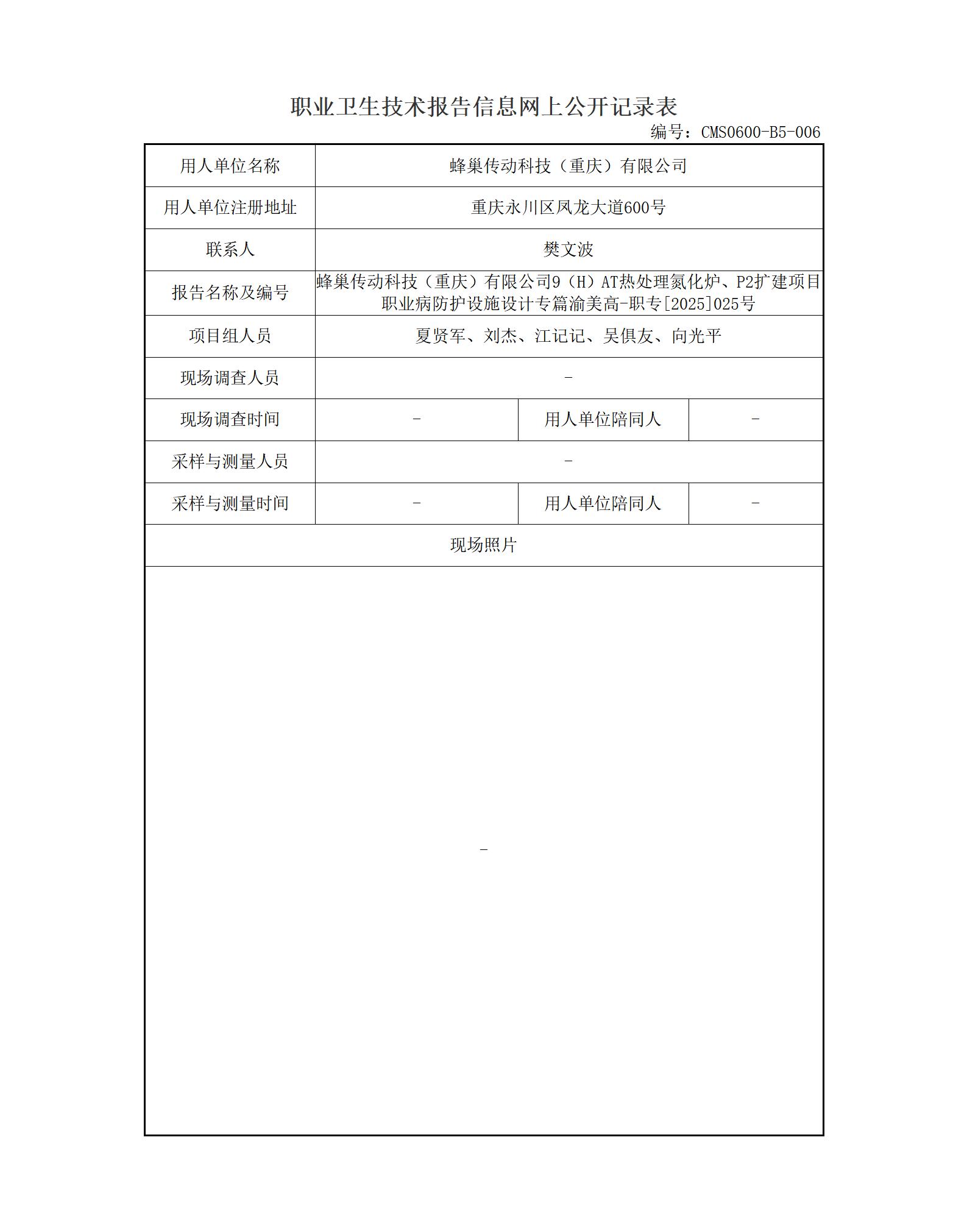 2025年-蜂巢传动科技(重庆)有限公司9(H)AT热处理氮化炉、P2扩建项目职业病防护设施设计专篇