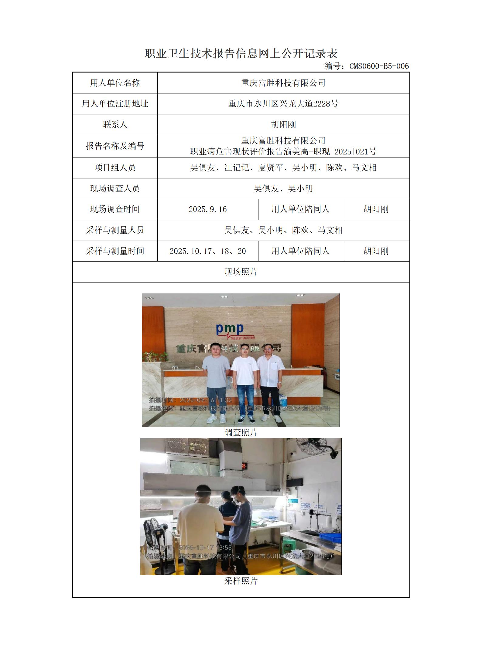 2025年-重庆富胜科技有限公司职业病危害现状评价