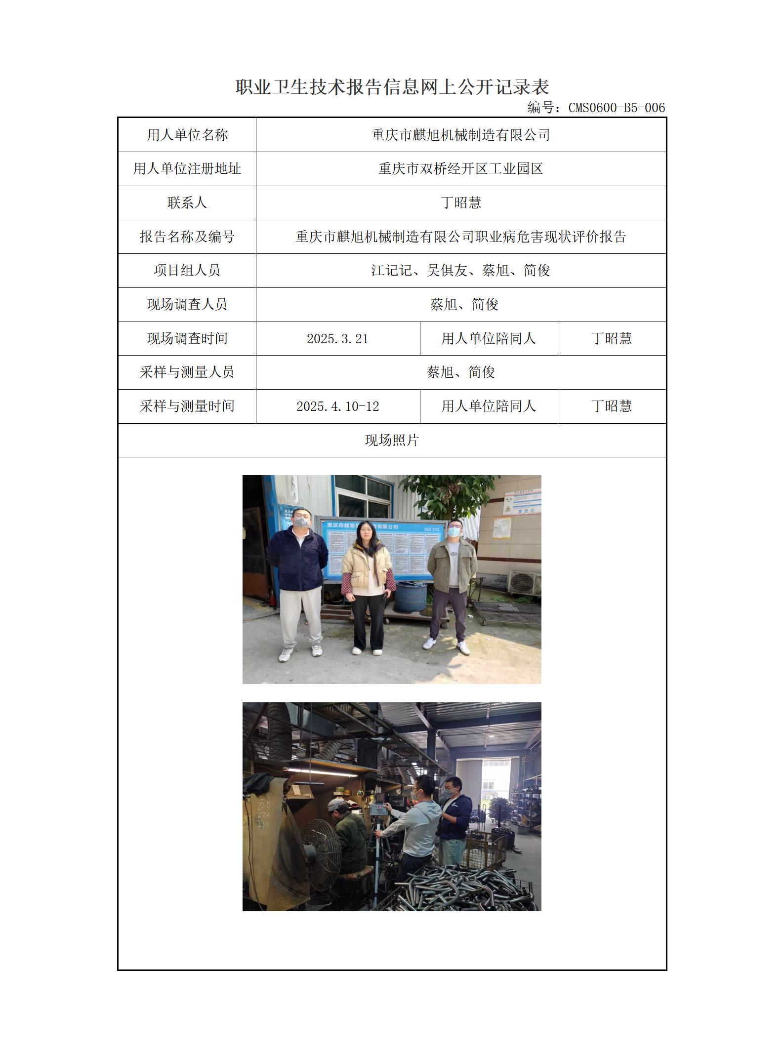 2025年-重庆市麒旭机械制造有限公司职业病危害现状评价