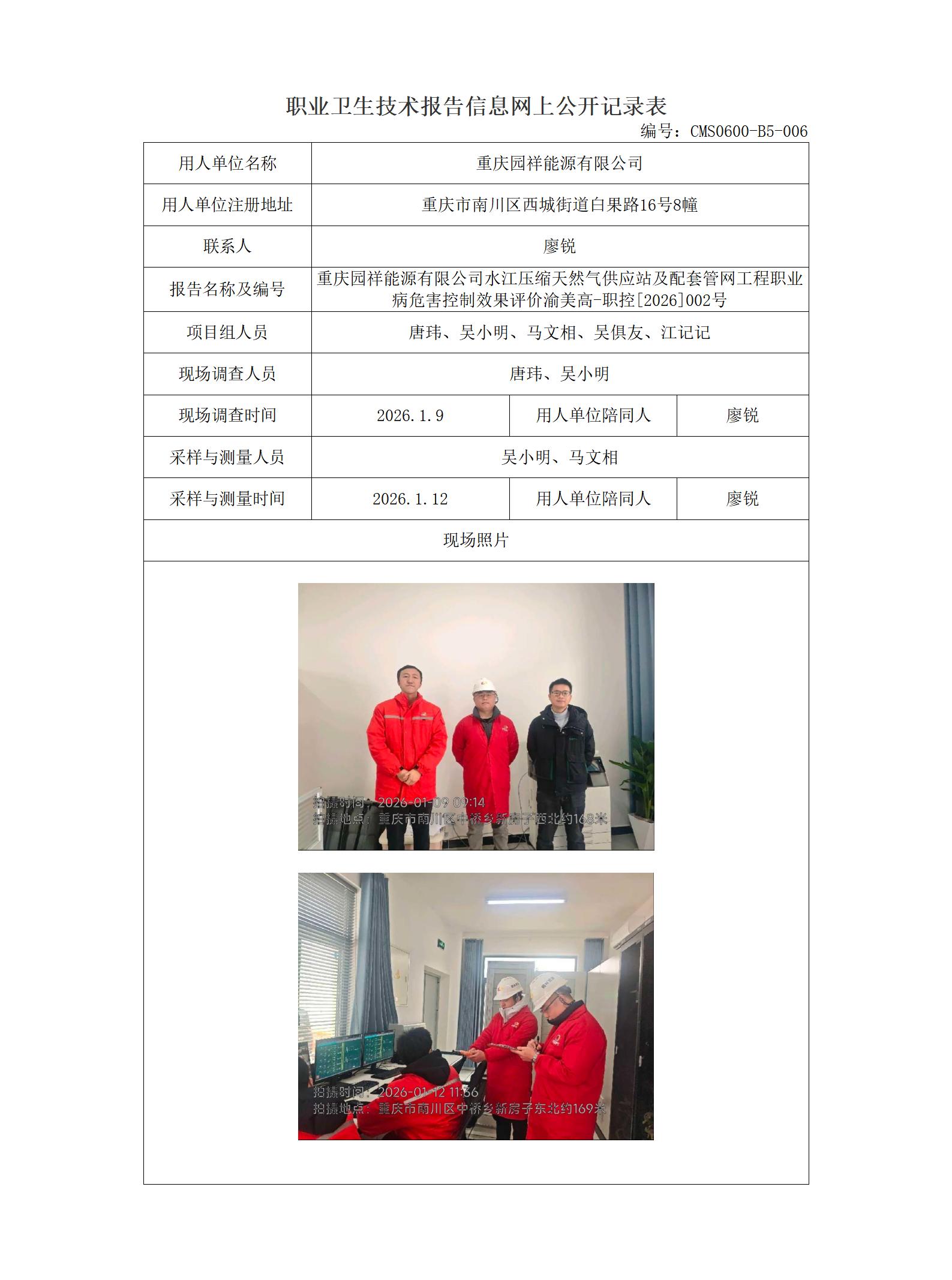 2026年-重庆园祥能源有限公司水江压缩天然气供应站及配套管网工程职业病危害控制效果评价