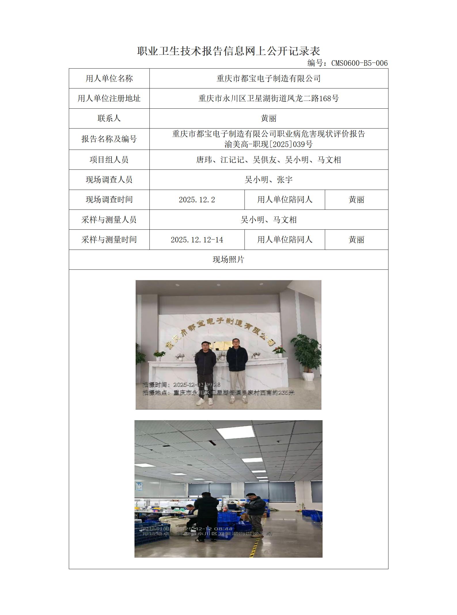 2026年-重庆市都宝电子制造有限公司职业病危害现状评价